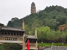 The Yan'an Pagoda Mountain Scenic Area (延安宝塔山景区) is located within the district.[17] The mountain's peak reaches 1,135.5 metres (3,725 ft) in elevation, and features a 44 metres (144 ft) tall pagoda built during the Tang Dynasty.[17]