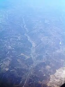 The Yan River flows through the district from northwest to southeast, from Hezhuangping to Qiaogou Subdistrict.[5]: 62 [8][9]: 1469 It then flows from the district's center to its northeast, through Chuankou, Liqu, Yaodian, and finally through Ganguyi.[5]: 62 [8][9]: 1469 The total length of the river's flow through Baota District is 62 kilometres (39 mi),[5]: 62 and it forms basin area in the district's north that totals 2,203.68 square kilometres (850.85 sq mi) in area.[5]: 62 [9]: 1469 The district's other major river is the Fenchuan River (Chinese: 汾川河; pinyin: Fénchuān Hé), which flows from Nanniwan to Yichuan County and into the Yellow River.[5]: 263 [9]: 1469 The Fenchuan Canal (Chinese: 汾川渠; pinyin: Fénchuān Qú), a small canal off the Fenchuan River which irrigates nearby land, flows through Madongchuan, creating the Jinpenwan Reservoir (Chinese: 金盆湾水库; pinyin: Jīnpénwān Shuǐkù).[5]: 268