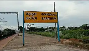 - ↑ "Barabhum Railway Station (BBM) : Station Code, Time Table, Map, Enquiry". www.ndtv.com. Retrieved 15 July 2019.