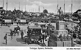 Robert Fairlie obtained permission to construct and operate a street railway in Bridgetown, and registered Barbados Tramway Company on 5 December 1882. The Barbados Tramway Company opened the first 2 miles (3.2 km) of its St. Lawrence tram line, as far as Hastings Rocks, on 5 December 1885. The main hub was near Nelson's Column at Trafalgar Square. The line toward south crossed the harbour in the Constitution River on Chamberlain Bridge one block approx. 700 ft (200 m) away from the terminus of the Barbados Railway, a narrow gauge steam railway that had been inaugurated on 20 October 1881.[2]