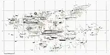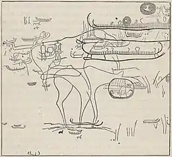 The remaining figures are typical of Bronze Age agricultural carvings, i.e. dating to approx. 1800 to 500 BCE. The figures depicted are predominantly boats, but horses, spirals and cupmarks also feature.[2][7] In total, the western part depicts approx. 150 ships, 59 horses, 1 dog, 15 footprints and 11 rings/spirals from the Bronze Age. The easternmost part of the field depicts 43 ships, 17 footprints, 5 horses, 1 dog and 3 rings.[6][8]