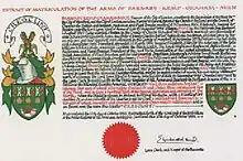 - ↑ Extract of Matriculation of the Arms of Barnaby Miln. Lyon Court, 1998.