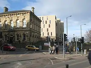 The Midland Railway built a new passenger station on the Regent Street site and this opened for business on 23 August 1873. On 20 January 1872 the Midland completed the purchase of the Old Court House, which fronted onto Regent Street, to incorporate the building into their new construction as a ticket office and waiting room, the new station being named "Court House" as a result. The station had an overall glass roof over its two through platforms and with its magnificent frontage was considered to be the most 'glamorous' station in the area. There was also a short 'bay' platform (No.3) at the Penistone end of the station. It was known to generations of 'Barnsleyites' as "Top Station".[1]