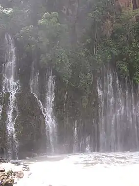 The river begins here as a natural convergence of a number of small streams and springs, and the water here is clean.[4][7] The water falling down the sides of the ravine creates small natural waterfalls or is taken advantage of to create natural fountains, which makes the park unique in Mexico.[4] Notable waterfalls include Camelina, La Yerbabuena, El Golgota, and Tzararácua. Fountains include La Copa de Oro, Cutzi – La Luna-, Arcoiris, Velo de Novia and Janintzizic.[2][7]