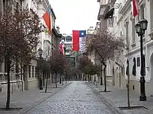 Barrio París-Londres is a barrio located in Santiago, Chile. The neighborhood intersects at Calle Londres and Calle París, located behind the San Francisco Church, in its former orchard. Barrio París-Londres features shops, hostels, hotels and cobble stone streets with renovated mansions, reminiscent of the Latin Quarter in Paris, France. The barrio was developed in 1923 by a group of architects, and consists of only two streets. The building at Calle Londres 38/40 is a former jail and torture facility, used during the Pinochet regime. Tiles in front of the building depict the names of former political prisoners who were held there.[1]