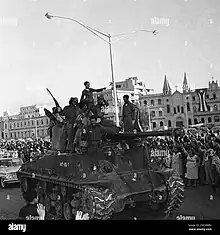 In the late 1950s, the Batista government bought the building and demolished it with the intention of building the headquarters of the National Bank of Cuba.[9] In a speech, Fidel Castro states: "We have always seen a building under construction here. This building (bank building) is an inheritance. We inherited this building at the time of the victory of the revolution. A building for the national bank was being built."[10] However, a photograph published in Havana on January 1959 showing Castro's son Fidelito riding on top of a tank contradicts this statement as the Beneficiensa building can be seen on the left background of the photo.