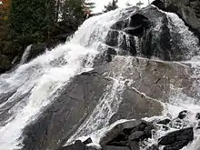 The river heads out of Algonquin Park and Nipissing District into McKay Township, part of the municipality of Laurentian Hills in Renfrew County, Eastern Ontario. At this point the river becomes part of Barron River Provincial Park on the south side while the north shore is part of CFB Petawawa. The river passes over First Chute and reaches its mouth at Lac du Bois Dur on the Petawawa River, which flows to the Ottawa River, about 2.5 kilometres (1.6 mi) west of the community of Black Bay and just before the border with the municipality of Petawawa.[4] The Petawawa Rivers flows via the Ottawa River to the Saint Lawrence River.
