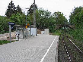 More concrete plans were published on 5 March 1872 for a line from Bünde to Rahden, branching off the Löhne–Rheine railway, which was opened on 21 November 1855.[2] But planning for a single-track branch line from Bünde to Rahden was finally approved by the Prussian minister for public works in 1892. Five years later, on 22 February 1887, ground was broken and, on 30 September 1899, the first services were operated on the railway by two special trains, which could be used free of charge. The Prussian state railways began regular operations the next day.[3]