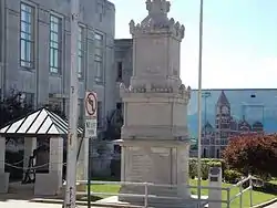 The Batesville Confederate Monument is located at the southeast corner of Main and Broad Streets in Batesville, Arkansas. It is a square monument, about 20 feet (6.1 m) in height, divided into four stages, and built out of local limestone. The first three-stage have a base trim element, and are unadorned except for inscriptions. The divider between the first and second stages is a projecting shelf, while that above the second and third stages resembles a turreted battlement. The monument was placed in 1907 by local chapters of the United Daughters of the Confederacy.[2]