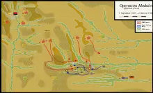 Following a number of failed attempts to take the settlements in 1986, eight FAPLA brigades mustered for a final offensive—Operação Saludando Octubre—in August 1987 with extensive auxiliary support from one of Angola's closest military allies, the Soviet Union.[13] The FAPLA offensive took the form of a two-pronged, multi-divisional movement southwards towards Mavinga, a major UNITA stronghold and logistics centre.[13] Once Mavinga was in its hands, FAPLA intended to expel the remaining insurgents from Moxico Province and pave the way for a final assault on the UNITA headquarters at Jamba.[13] The Soviet Union supplied FAPLA with over a billion dollars' worth of new military hardware for the purpose of this offensive, and between 4 and 9 Soviet advisers were attached to each FAPLA unit on the brigade level.[14]