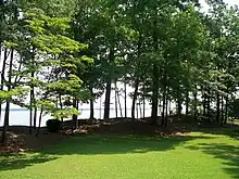 The land in this part of North Carolina is low and rather flat, and is sometimes marshy. In 1862, the solid land was mostly covered with open pine forest, although in places it was broken into low hills with deciduous forests, separated by ravines.[2] It is crossed by many creeks that sometimes rise to the status of small rivers. One of these, the Trent River, separates New Bern from the land to its south. The slightly smaller Slocum's Creek, enters 16 miles (26 km) farther down the Neuse. It was to be the landing site for the attacking Federal forces.