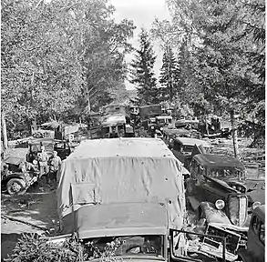 In the several days of fighting that ensued in the Porlampi area, the Finns employed motti skirmishing tactics to counter the superior Soviet numbers. The Finnish artillery was reported to have been particularly effective during the engagement as it disabled many soviet vehicles, blocking roads and creating bottlenecks.[9][13] Late in the day on 30 August the 43rd Rifle Division pushed the 8th Division out of Porlampi and into the nearby village of Somme, which lay several miles to the northwest. There the fighting continued throughout the night. On the morning of 31 August the main body of the IV Corps arrived, attacking the 123rd Rifle Division at Porlampi and the 115th Rifle Division at Ylasomme, an action which collapsed the north flank of the Soviet army. The Soviets were forced back, and the Finnish forces made ready to encircle them. However, the 8th Division was still engaged in heavy fighting with the 43rd Rifle Division to the northwest of town and was unable to complete the encirclement. Using the heavily forested terrain to their advantage, the Soviet 123rd and 115th Rifle Divisions withdrew southwest towards Koivisto.[12][9] Vyborg fell on 31 August, freeing up more Finnish forces to engage the remaining forces of the 23rd Army. The 43rd Rifle Division, which had advanced furthest west, was almost completely destroyed by the Finnish forces on 1 September. Some survivors retreated to the south and were evacuated from the Baltic coast by the Soviet Navy in November.[14]