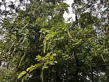 The young leaves and flowers of Bauhinia purpurea are edible.[3] In the Philippines, B. purpurea is known as alibangbang[4] (lit. "butterfly"). The leaves have a citrusy and sour taste and are used either as a souring agent for sinigang and similar dishes, or, as a pickle condiment, in Philippine cuisine.[5][6][7]