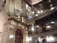 The Beacon also retains its original Wurlitzer organ in its orchestra pit. The organ was manufactured in 1928[26] and contains four manuals and 19 ranks.[26][27][28] The Beacon is one of three theaters in Manhattan that retains its original organ, along with Radio City Music Hall and the United Palace.[26][29] The organ was abandoned by the early 1960s, but it was not removed because the removal cost was too high for the theater's operators.[30] The organ was restored in 1967[31] and remained in use at the Beacon until it was sealed in 2009.[26]
