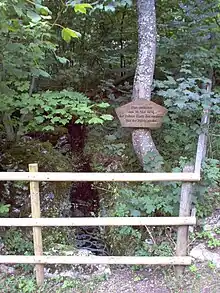In 1834,[10] a local teacher known mononymously as "Fauth" accidentally discovered this part of the cave.[11] While collecting herbs, he dropped his Tabaksdose (tobacco packet) into a crevice, which he found he could widen and climb down.[12] The next day, him and his friends opened up the cave to tourists, who raided it for souvenirs, or vandalised its geology.[1] Today, the entrance Fauth found is named "Fauthloch" in his honour.[11]