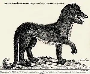 ![]() Artist's conception of one of the Beasts of Gévaudan, 18th-century engraving by A.F. of Alençon | |