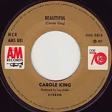 Barbra Streisand covered "Beautiful" as the opening track of her 1971 album Barbra Joan Streisand.[9] Anne Murray recorded "Beautiful" for her 1972 album release Annie. Richard Marx covered "Beautiful" on the 1995 tribute album Tapestry Revisited: A Tribute to Carole King.[10] Allmusic critic William Ruhlmann described Marx's version as one of the best covers on the album.[10] "Beautiful" has also been covered by Julie Conant and by The Overtures.[11][12] And, more recently, by Jonathan Rayson on his 2006 album "Shiny and New".