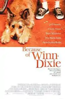 Because of Winn-Dixie is a 2005 American family comedy-drama film based on Kate DiCamillo's 2000 novel of the same name, with the screenplay written by Joan Singleton, produced by Trevor Albert and directed by Wayne Wang. It was produced by Walden Media and released by 20th Century Fox. It stars AnnaSophia Robb (in her debut film role), Jeff Daniels, Cicely Tyson, Luke Benward, Dave Matthews, Eva Marie Saint, Courtney Jines, B.J. Hopper, Nick Price, Elle Fanning, Harland Williams, and John McConnell. It premiered at the USA Film Festival on January 26, 2005 and was theatrically released on February 18, 2005. It received mixed reviews from critics and earned $33.5 million against a production budget of $14 million. It was released on DVD and VHS on August 9, 2005, by 20th Century Fox Home Entertainment.