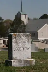 ![]() Tombstone, with White Rock Baptist Church in background. | |
