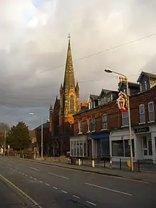 A prominent Methodist Church was built by the architect W. J. Morley of Bradford in Chilwell Road in 1902. Its landmark spire became more visible after the demolition of several large mill buildings in the 1990s. The front of the building was floodlit at night.