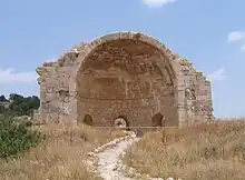 Saint Anne's church was first built in the Byzantine period and then rebuilt by the Crusaders in the 12th century. The ruin is known in Arabic as Khirbet (lit. "ruin") Sandahanna, the nearby tell (mound) of Maresha being called Tell Sandahanna.[16] The freestanding remains of the apse are well preserved (see photo).