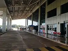 A new terminal building was inaugurated on 14 September 2017 as part of the airport expansion project. The terminal building is spread over 3,600 square metres and has a capacity to accommodate over 300 passengers. It has two baggage conveyor belts and six check-in counters. It has an apron for parking of three Airbus A320 and Boeing 737 aircraft.[4] The old apron has two parking stands designed for the ATR 72 and similar aircraft.[18][19] There are also two additional aprons, one on the north side of the runway that serves as an isolation bay and one on the south side. These aprons are each connected by single taxiways to runway 08/26, which measures 2,300 by 45 metres (7,546 ft × 148 ft).[19]
