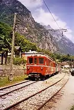 In 1972, all passenger traffic ceased and the line between Bellinzona and Castione-Arbedo was closed, whilst freight traffic continued on the rest of the line.[4] In 1978 the upper section of the line was damaged by a bad storm, and was never repaired. The remnant of the line between Castione-Arbedo and Cama continued carrying freight traffic until the closure of the factories on the line removed that traffic. In 2003, freight traffic ceased and the remaining 12.7 kilometres (7.9 mi)line[2][4] was transferred to SEFT for operation as a tourist line.[4] It was finally closed at end of 2013.