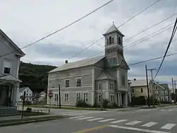 Bellows Falls is an incorporated village within the municipality of Rockingham in southeastern Vermont. It is located on the west bank of the Connecticut River, and was the site at which that river was first bridged, in 1785. As a consequence, the village has since then been a transportation hub, as a nexus of water, road, and railroad routes formed there over the course of the 19th century. Industrial development grew in part due to the Bellows Falls Canal, which provided water power to a variety of industries. The village downtown grew immediately west of the canal and the primary industrial area, and its residential neighborhoods grew west and south of the downtown.[2]