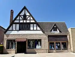 The Benson Building, also known as the Union Bus Depot, was an historic building located in downtown Ottumwa, Iowa, United States. The Tudor Revival style commercial building was completed in 1930. The one-story structure was composed of highly textured, painted brick. The façade featured a steeply-pitched gable roof and half-timbering. The building was originally used as an indoor miniature golf course. Its significance was attributed to its architecture.[2] It was individually listed on the National Register of Historic Places in 1995 as a part of the Ottumwa MPS.[1] In 2016 it was included as a contributing property in the Greater Second Street Historic District.[3]