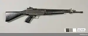 The Beretta AR70/90 is a gas operated assault rifle chambered for the 5.56×45 mm NATO cartridge, and is the standard issue service rifle of the Italian Armed Forces. The weapon is also designed to be fitted with a rifle grenade, and has grenade sights. The AR series comes in many variants such as the AR90, with a wire folding stock, for use by paratroopers.