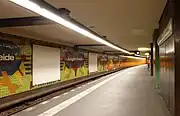 The design took over the architect Rainer Gerhard Rümmler as with all Berlin subway new buildings at this time.[4] The result was a decorated with colorful floral motifs fired on ceramic tiles station, which, however, looks very dark by the barren lighting.