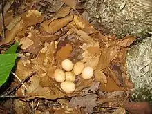 In contrast to conservative bet hedging, diversified bet hedging occurs when individuals lower their expected fitness in a given year while also increasing the variance of survival between offspring. This strategy uses the idea of not "putting all of your eggs in a basket."[6] Individuals implementing this strategy actually invest in several different strategies at once, resulting in low variation in long-term success. This could be demonstrated by a clutch of eggs of different sizes, each optimal for one potential environment of the offspring. While this means that offspring specialized for another environment are less likely to survive to adulthood, it also protects against the possibility of no offspring surviving to the next year.[6]