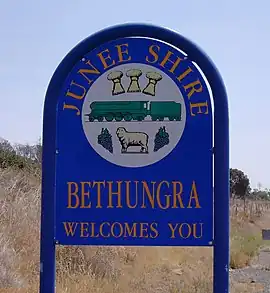 Bethungra is a locality in Junee Shire in the South West Slopes region of New South Wales, Australia situated on the Olympic Highway about 13 kilometres northeast of Illabo and 24 kilometres southwest of Cootamundra.[3]