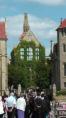 It connects to the Manchester museum (the third side of the Quadrangle), which was also built in 1887, also by Waterhouse. This allowed students to access the many specimens from the museum.[1][2][3]