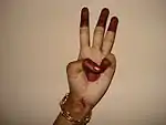 The gestures used in Bharatanatyam are called Hasta (or mudras). These symbols are of three types: asamyuta hastas (single hand gestures), samyuta hastas (two hand gestures), and nrtta hastas (dance hand gestures).[98] Like words in a glossary, these gestures are presented in the nritta as a list or embellishment to a prelim performance. In nritya stage of Bharatanatyam, these symbols set in a certain sequence become sentences with meaning, with emotions expressed through facial expressions and other aspects of abhinaya.[98] The basic standing position is called as Aramandi.
