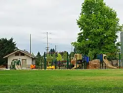That year Hillsboro received a grant from the American Revolution Bicentennial Commission in the amount of $2,500 for development of a soccer field; the city matched the grant with city funds to further develop the park.[8] Plans called for a soccer field, trails, and a playground, in addition to the fire station and water reservoir on the park grounds.[9]