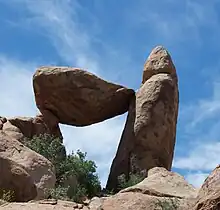 There are several hot springs in the park, including the springs in the Hot Springs Historic District. The main hot spring is simply called Hot Springs; it is also known as Bocadillas hot springs and Langford hot springs. Hot Springs is on the National Register of Historic Places.[35] The hot springs were the first major tourist attraction in the Big Bend area, before the national park was established. In 1909, J.O. Langford began developing the springs. There was a small stone soaking tub of local stone from the time before Langford's development was excavated at the site. A dugout shelter existed at the site that was renovated by the Langford family as a residence. The Langfords then constructed an adobe house, a stone bathhouse, and bathing shelters made of brushwood. Later in 1927 they rebuilt the bathhouse, and built a store and a motor court with seven attached cabins.[36]
