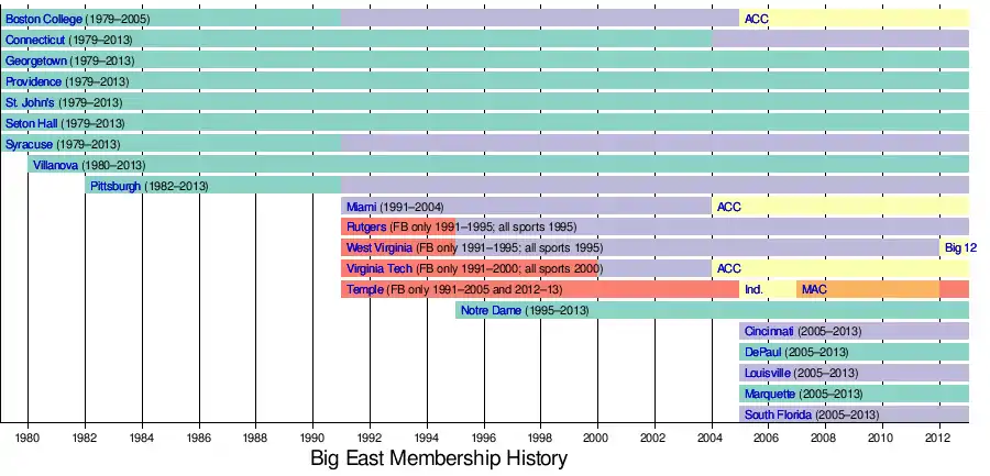 4. 1 2 "Big East Conference - BIG EAST Conference History". www.bigeast.com. Archived from the original on September 16, 2017. Retrieved May 8, 2018.