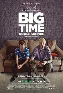 Big Time Adolescence is a 2019 American coming-of-age comedy film written and directed by Jason Orley, in his directorial debut.[2] It stars Pete Davidson, Griffin Gluck, Emily Arlook, Colson Baker, Sydney Sweeney and Jon Cryer.[3]