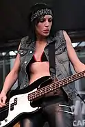 In 2011 Lilac magazine became the first Arabic magazine to show a bikini on the cover. The 22-year-old model, Huda Naccache, from Haifa, Israel is pictured posing in a black sequinned bikini.[107] The Japanese magazine Young Animal (Yangu Animaru) includes color pinup photos of teenage girls in bikinis (generally pop stars and gravure idols). The editor of The SFWA Bulletin, Jean Rabe, resigned in 2013 over a controversy about sexism[108] in a cover image of the Bulletin, which depicted a woman in a scalemail bikini.[109]