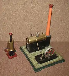 The range of live steam engines included stationary engines, railway locomotives, road vehicles, and boats. Steam engines were made throughout most of the company's history. From the start, they made stationary engines and mobile models. The stationary models were generic in outline and not representative of particular prototypes. Mobile engines were more recognisable, and the more expensive versions could almost be classed as scale models, albeit inaccurate. The Railway locomotive versions were often very similar in outline to their clockwork and electric models. [2] [3] [4] [5] [6]