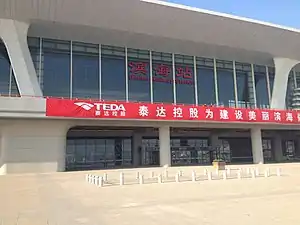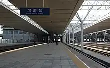 Binhaixi (Binhai West) railway station (Chinese: 滨海西站; pinyin: Bīnhǎixī Zhàn), formerly known as Binhai railway station, is a railway station on the Tianjin–Qinhuangdao high-speed railway and is the largest located within the Binhai New Area, Tianjin, China.[1] It is one of four major rail hubs in Tianjin, with Tianjin, Tianjin West and Binhai railway stations.[2] The name of the station was changed from Binhai to Binhai West on 5 January 2019.[3]