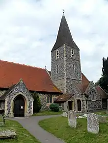 Residents of Birchington-on-Sea have included the British screenwriter Tudor Gates, who wrote a number of stories about female vampires for Hammer Studios in the early 1970s. Gates died in the village in January 2007.[72] On Easter Sunday, 1882, Pre-Raphaelite illustrator, painter, translator and poet Dante Gabriel Rossetti rented a bungalow in the village, in an attempt to recuperate from ill-health. He died in April the same year and was buried in the churchyard of All Saints, under a tombstone designed by fellow artist, Ford Madox Brown.[73] Composer Rosalind Ellicott, who lived in Seasalter, is buried near her parents (her father was Charles Ellicott, the Bishop of Gloucester and Bristol) in Birchington-on-Sea churchyard.[74]