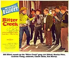 Bitter Creek is a 1954 American Western film directed by Thomas Carr and starring Bill Elliott, Carleton Young, and Beverly Garland.[1] The screenplay concerns a man who sets out to personally avenge the murder of his rancher brother.
