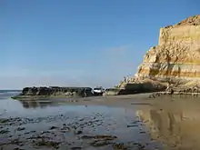 Black's Beach is a secluded section of beach beneath the bluffs of Torrey Pines on the Pacific Ocean in La Jolla, San Diego, California, United States. It is officially part of Torrey Pines State Beach. The northern portion of Black's Beach is owned and managed by the California Department of Parks and Recreation, while the southern portion of the beach, officially known as Torrey Pines City Beach, is jointly owned by the city of San Diego and the state park, but is managed by the city of San Diego.[1][2] This distinction is important as Black's Beach is most known as a nude beach, a practice that is now prohibited in the southern portion managed by the city of San Diego.[3]