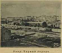 Most of the Baku oil workers lived in the area. The suburb also accommodated oil companies offices, workshops and housing for the associated labourers. Living conditions were very bad in contrast to conditions in Baku proper.[6] Wealthy residents chose to settle in the city centre, where oil extraction and refinery were forbidden.[7] The area came to be known as Black City (Russian: Чёрный город) because of the black smoke and soot coming from the factories and oil refineries. A Turkish traveller who visited Black City in 1890 described it as follows: