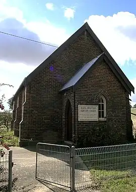 Black Mountain Baptist Church was built there in 1902 and restored in 1992. Black Mountain has a public school and nursery which is the home of the award-winning three point linkage Youman Tree Planter machine and services. Booroolong Railway Station Post Office opened on 8 December 1884, was renamed Black Mountain around 1886 and closed in 1985.[2]