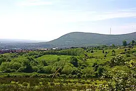 Black Mountain is a large hill which overlooks the city of Belfast, Northern Ireland. With a height of 1,275 ft (389 m),[1] it towers over most of west Belfast and is part of the Belfast Hills. Its name is probably derived from the adjoining mountain called Divis (/ˈdɪvɪs/; from Irish Dubhais 'black ridge'), and they may have been seen as one mountain in the past.[2] Black Mountain transmitting station is on the summit.