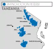 The forests of the Eastern Arc Mountains are critical habitats for R. petersi.[5] The Chome Forest Reserve in Tanzania is an isolated, and largely undisturbed, habitat for the shrews.[5] Populations densities in the Chome area are significantly lower than the surrounding areas, home to approximately 2700 R. petersi, and is thought to be the result of restricted migration and illegal human activity.[5] It was once listed by the IUCN Red List as vulnerable, but has since been changed to a status of least concern.[1] However, its numbers are reportedly declining; suffering from severe forest fragmentation and degradation from human expansion.[6]