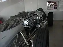 The Blastolene Indy Special is a unique, specially built car. Created from a military tank engine and a custom-made aluminium body,[1] it produces 810 bhp at 2,800 rpm and 1,560 ft-lb of torque at 2,400 rpm.[2] The successor to the Blastolene Special, the design of the Blastolene Indy Special is styled after a 1950s era Indy Car.
